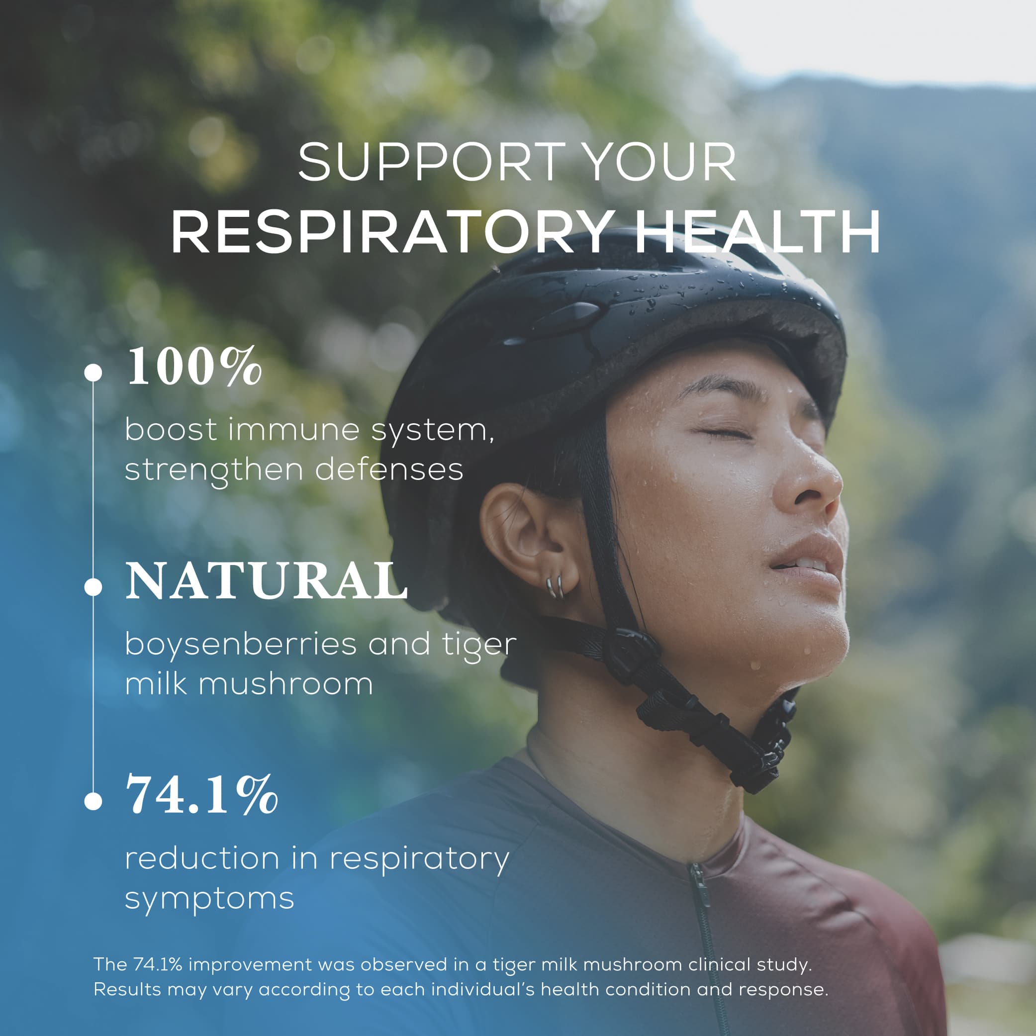 Rich in antioxidants and Tiger Milk Mushroom, it helps protect the lungs against allergens, pollutants, and harmful germs.